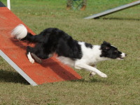ミルキーは、アイスと一緒にオビを始めました。ミルキーは待っているのが苦手で、2頭一緒に教えていくのは大変でしたが無事にゴールドカードを取得できました。今では散歩の合間に、コミュニケーションの1つとして楽しんでいます。これからも楽しくアジリティーとオビをやっていこうと思います。 |